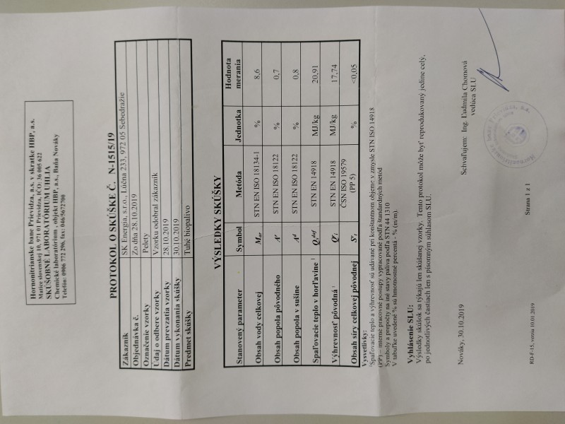 Výhrevnosť 18Mj/kg, popol do 0,8% max.