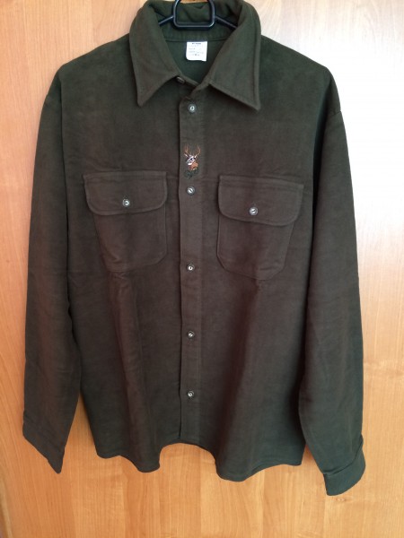 Predám pánsku košeľu s dlhým rukávom v zelenej farbe. Dve náprsné vrecká so zapínaním na gombík. Ozdobné gombíky. Výšivka jeleňa v strede košele. Materiál 100% bavlna - príjemná a hrejivá. Vhodná na chladnejšie obdobie!