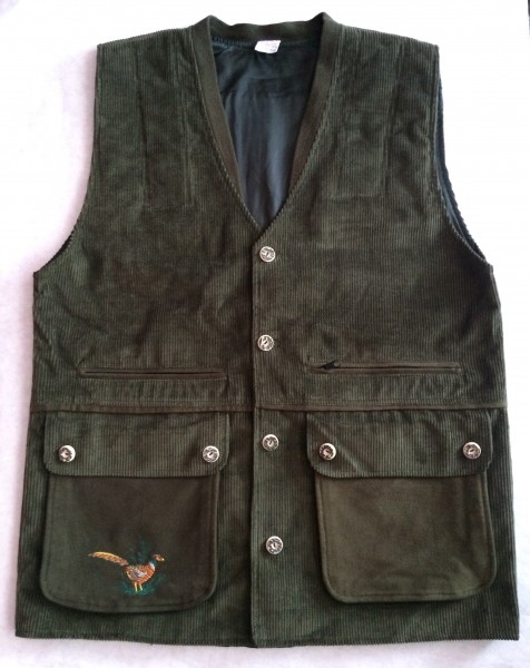 Predám poľovnícku menčestrovú jemne oteplenú vestu značky Athos. Vesta je zdobená výšivkou bažanta. Gombíky sú imitáciou parožia. Vesta má sedem vreciek plus skryté vrecká na 10x brokových nábojov. Luxusný vzhľad.