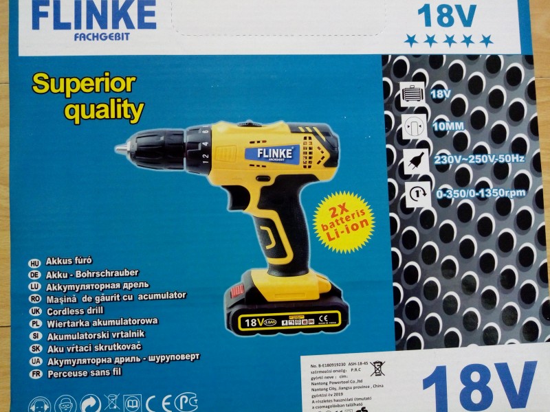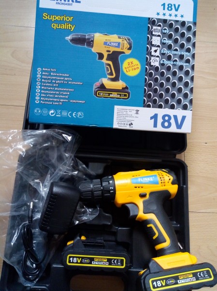 Aku vŕtačka/skrutkovač Flinke, 2x 18V lion-bat.