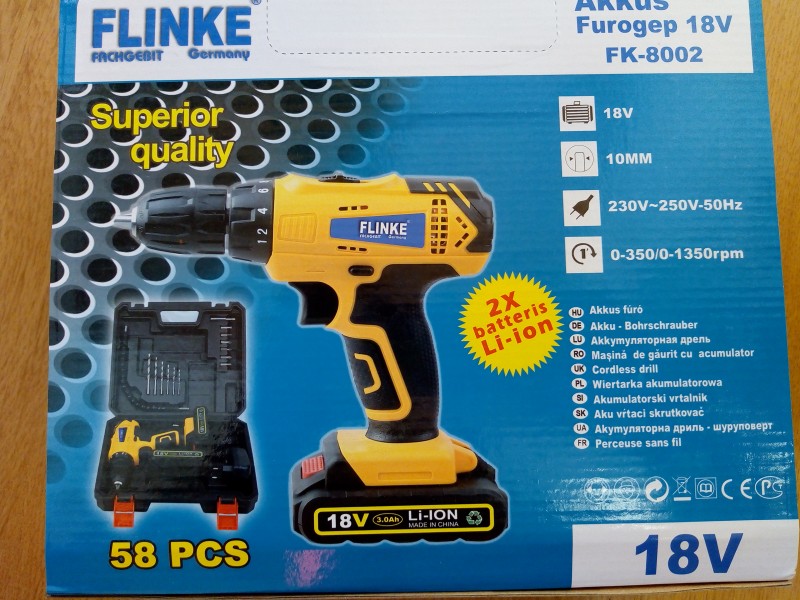 -Mame sj Aku vŕtačka/skrutkovač Flinke, 2x 18V lion-bat.+ 58 Prislušenstvo cena 40eur