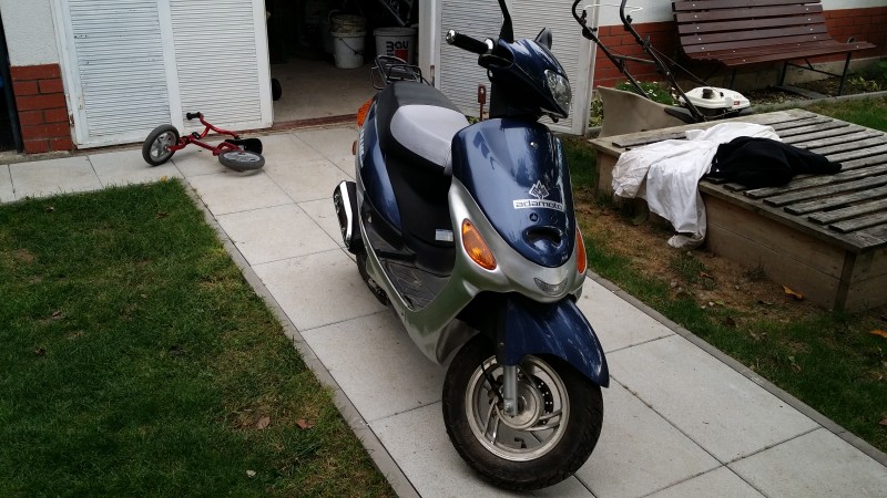 Predam nejazdeny skuter Adams 50 ccm. Najazdenych 326 km, stav ako novy. Odvtedy odlozeny v garazi pod plachtou. Syn odisiel studovat mimo Sk. Este neprihlaseny. Kupeny v obchode v Sk. Mam doklad o kupe, fakturu, certifikat COC... Na cene sa viem rozumne dohodnut.