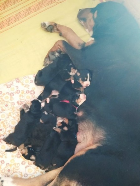 Ahoooooj, jmenuji se Bindy z Dolních Kounic a jsem velký švýcarský salašnický pes. Já a moji sourozenci hledáme super páníčky, kteří nás budou milovat. Budeme velcí kamarádi, parťáci a závisláci. Nejraději bychom byli na zahradě a chodili na procházky, ale můžeme chodit i na výstavy. Máme moc rádi děti, a taky všechny zvířátka, budeme výborní hlídači. Na odběr budeme v polovině března 2020. Chovatelé nás rozmazlují, bydlíme v obýváku, budeme socializovaní, čipovaní, očkovaní, odčervení, pojištění a vymazlení. Těšíme se na vás! Telefon na našeho dvojnožce je +420 603 925 353.