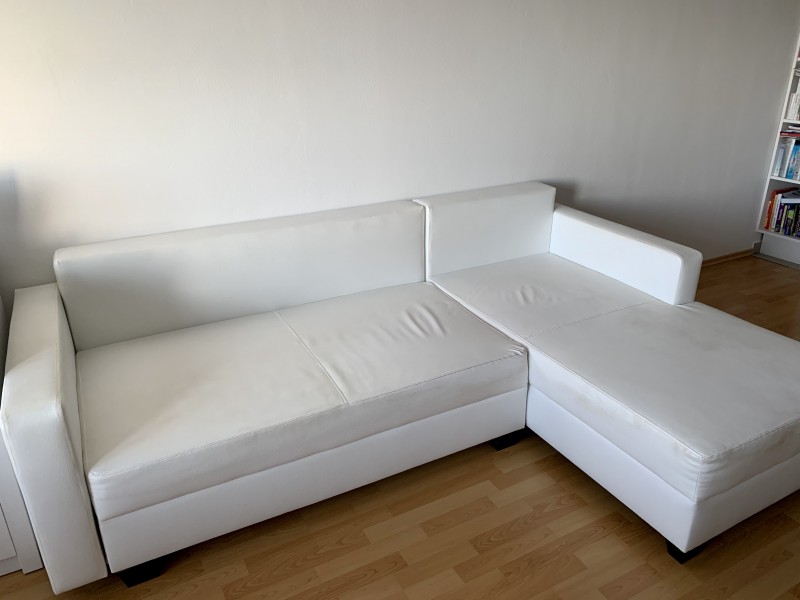 Za 40 € predám rozkladaciu sedačku z ekokože s úložným priestorom. Rozmery: šírka 244 cm, hĺbka 90 cm, výška 63 cm Stav: nepoškodená