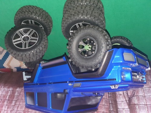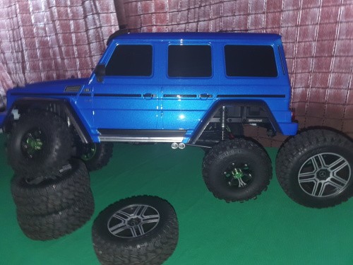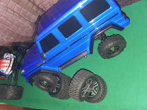 Predám RC auto Traxxas Mercedes G500,uplne nové,nejazdené ani raz. Urobené je predné osvetlenie 2x modré,zadné osvetlenie 2x červné diody. Modrá metalíza a k nemu sú na zakazku vyrobené kolesa v hodnote 100€. Dokúpené a namontované kryty víčka diferenciálu. Bez bateriek (mam dve autícka a jeden pár bateriek),bez krabice. Kupované teraz na Vianoce.