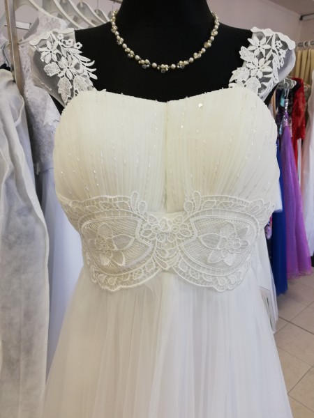 svadobne šaty za zostatkovu cenu veľ,40-42,strih vhodny na tehulky,kremove,šaty su vzadu len na šnurovanie.
