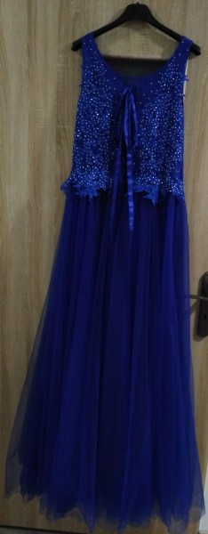 Predám dlhé spoločenské šaty sýto modrej farby, oblečené 1x, vhodné na stužkovú alebo ples, vzadu sú na šnurovanie
