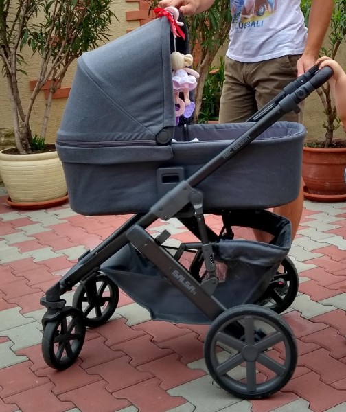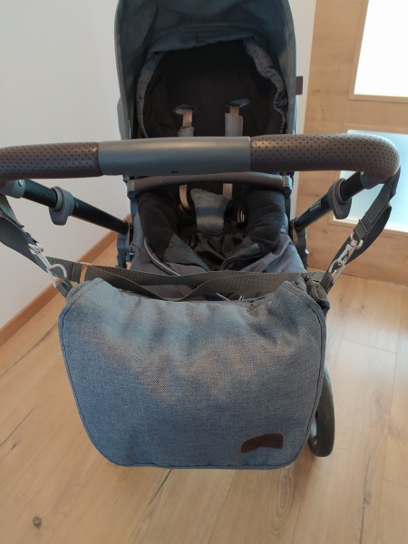 Ku kočíku máme aj priestrannú tašku, rovnakej farby ako kočík, upevňuje sa veľmi jednoducho na rukoväť kočíka.