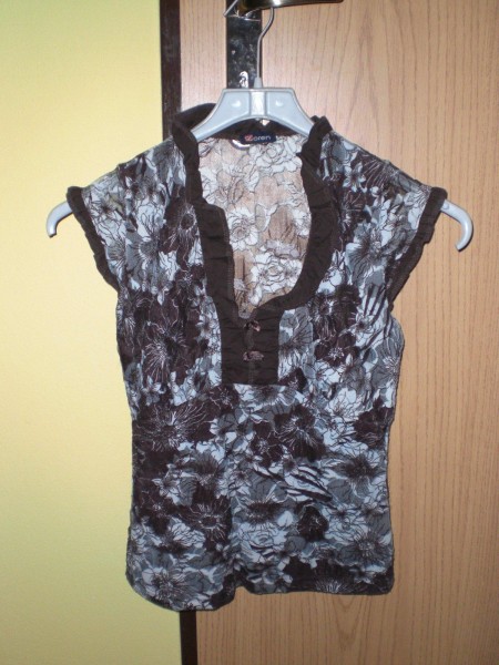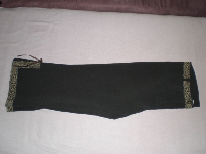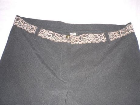 Predám tmavohnedé spoločenské nohavice s čipkou. Veľkosť 38 cm. Dĺžka 80 cm, šírka v páse 40 cm. Materiál 94 % polyester a 6 % spandex. Vyrobené na Slovensku. Výška sedu spredu je 22 cm, zo zadu je to 29 cm. Vpredu sú na zips a gombík medenej farby. Boli nosené veľmi málo. Sú v bezchybnom stave, ako nové. Cena 8 Eur plus obyč. poštovné 1 Euro pri platbe vopred alebo 1,60 Eura doporučene. Ak by Vám neboli nohavice dobré, môžete mi ich vrátiť. Ale poštovné nevraciam. Predávam k nim aj spoločenský top za 4 Eur. Viď posledné foto.