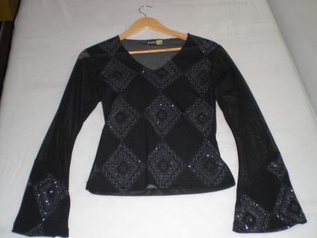 Predám spoločenský top čiernej farby so striebornou lesklou výšivkou.