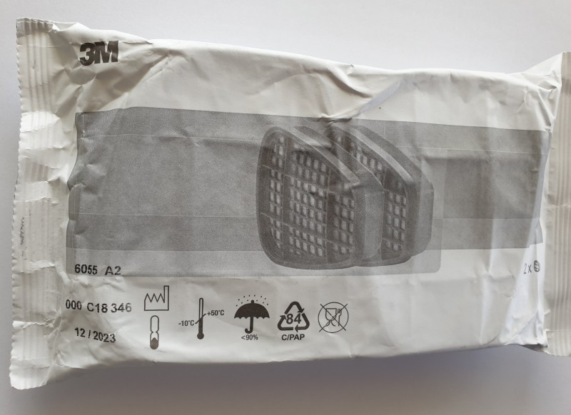 Filtračná trieda A2. Filtre sú určené pre použitie s maskami a polomaskami značky 3M.