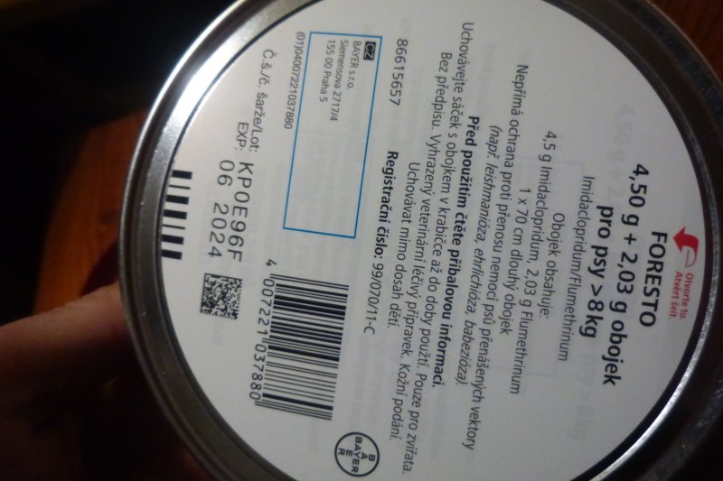 Predám obojok proti kliešťom a blchám značky foresto, pre psov od 8kg. Obojok bol od 1.4.2020 do 20.4.2020 na novofundlandskom psíkovi, ale vzhladom k jeho dlhým chlpom nefungoval ako mal. Nemá žiadne vady, je ako nový. Kúsok na konci je odstrihnutý. Obojok meria 66 cm. Mal by fungovať podľa výrobcu až osem mesiacov, čo je do 1.12.2020. Dotazy píšte na email. Osobné predanie možné v obci Hybe a blízkom okolí (LM,LH atď.).