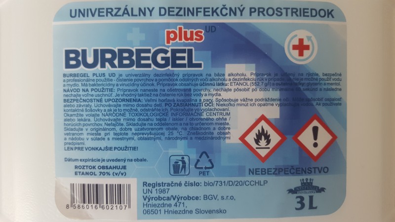 Ponúkame dezinfekčný prostriedok v 3L bandaskách. Je to univezrálny tekutý prípravok na báze alkoholu, určený na vonkajšie použitie - dezinfekciu pokožky, povrchov, nástrojov a plôch.