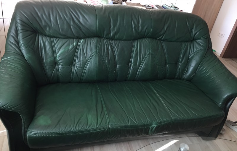 na predaj sedacka pevna hruba koža, tmavozelena, trojka plus dve dvojky. stav použivana mame v obyvačke este niekomu posluzi ...cena 300euro za vsetky 3 diely,