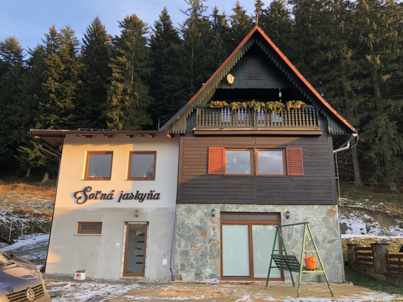 Z chodby sa dostávame schodmi do suterénu, kde nájdete okrem privátneho wellness aj samostatnú toaletu. Wellness je vybavené sprchovacím kútom, suchou saunou a osvetlenou masážnou vírivou vaňou pre 4 osoby (teplota vody až 40 °C) pre dokonalú relaxáciu a oddych. Z priestorov wellnessu sa vonkajšími dvermi dostávame do soľnej jaskyne, v ktorej vám váš oddych prinesie blahodarné účinky pre vaše zdravie.