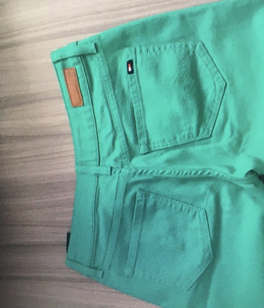 Predám úplne nové nohavice - rifle zn. Tommy Hilfinger, zelené, regular fit 26/32, veľ.36,mierne elasticke, cena 20€+poštovné