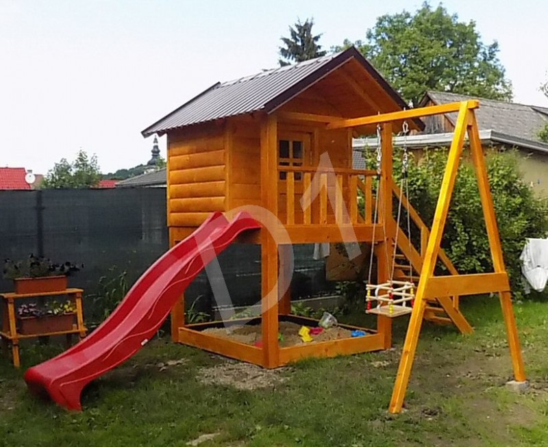 Predám detský zrubový domček so šmýkačkou , hojdačkou a pieskoviskom, viac info emailom