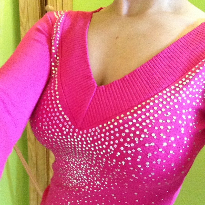 Ponukam na predaj novy ružový svetrik ,je nový ,žial mne nesadla velkost.Je to velkost L.Je pekne kombinatelný napr. s leginami ´=D Výstrih z dobia jemne diamantiky ,tak že k nemu nemusite prisposobovat šperky.