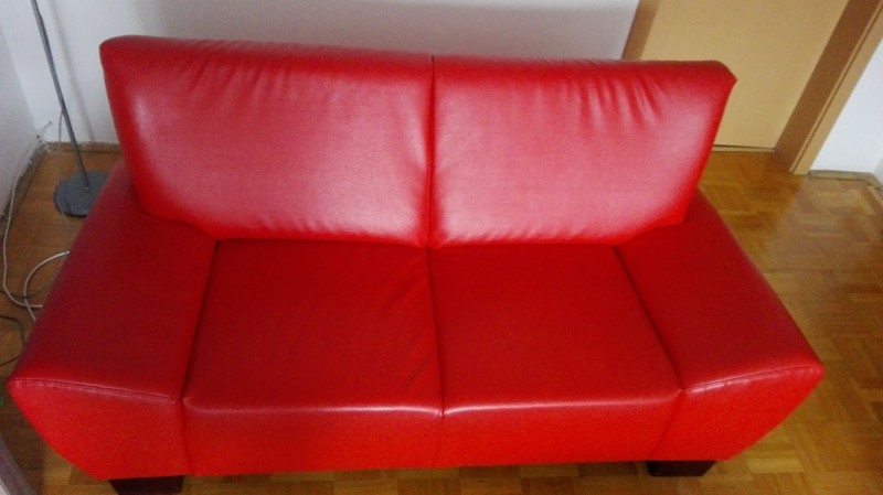 Predám červenú koženú súpravu pozostáva z dvoch gaučov