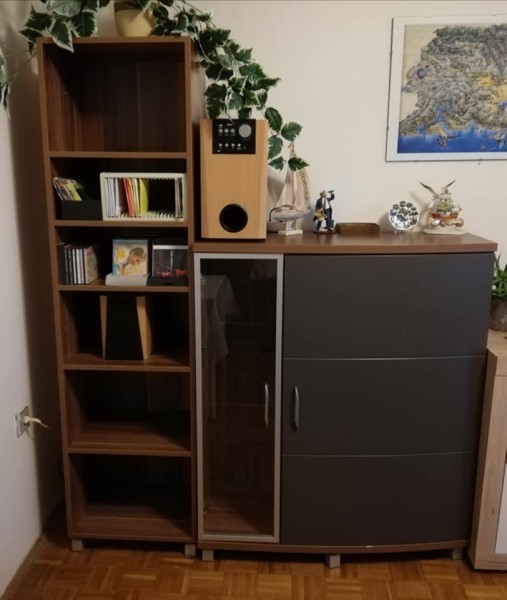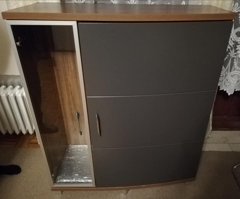 Nizka 2 dverová 101x42x119cm 1 časť sklenené dvere, 2.čast tmavé sivé plné dvere