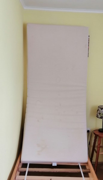 drevená posteľ s roštom a matracom, používaná, zachovalá