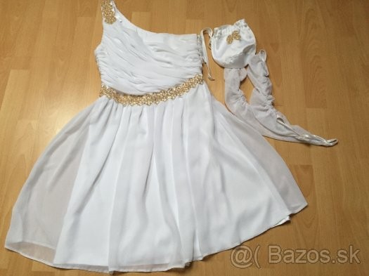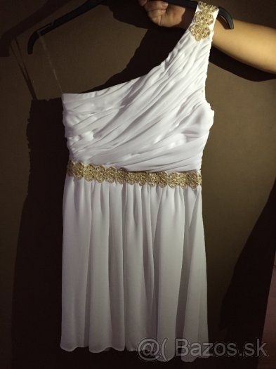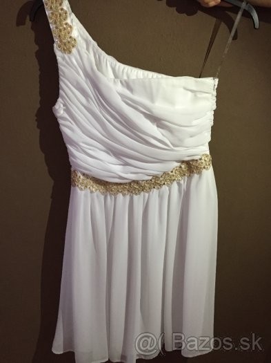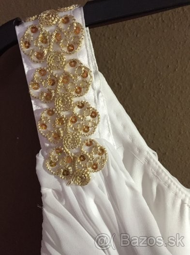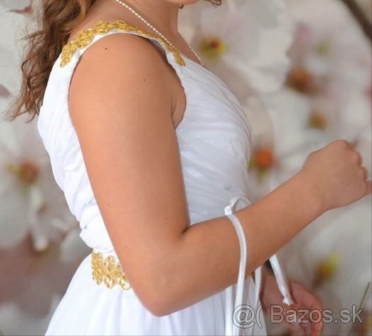 Predám tieto krásne šaty , bielej farby so zlatým doplnkom .Krásne sedia sú vhodné na venčeky a rôzne iné slávnosti