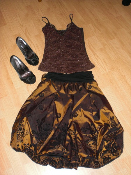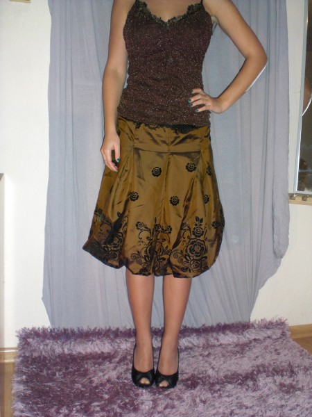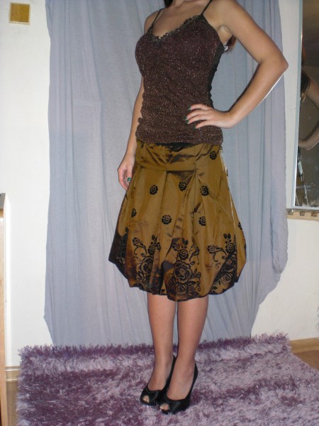 Krásny komplet (sukňa + top na ramienka) na spoločenskú udalosť. Top: veľkosť M (vhodné aj na S), dĺžka 56 cm, šírka 32 cm, elastický, 2x oblečený, nepoškodený. Sukňa: veľkosť neudaná (vhodná na S/M), dĺžka 62 cm, šírka 34 cm, elastický pás, 2x oblečená, nepoškodená. Cena kompletu 30 Eur. Možnosť kúpiť aj samostatne. Pri kúpe kompletu poštovné zadarmo. Osobný odber možný v Ilave alebo v Bratislave.