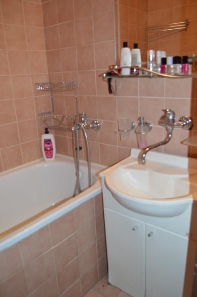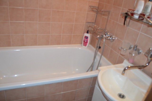 Bytové jadro vymurované – kúpeľňa, v ktorej je vaňa a umývadlo a dve batérie