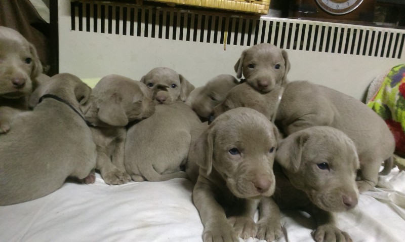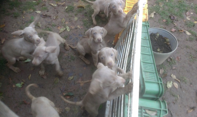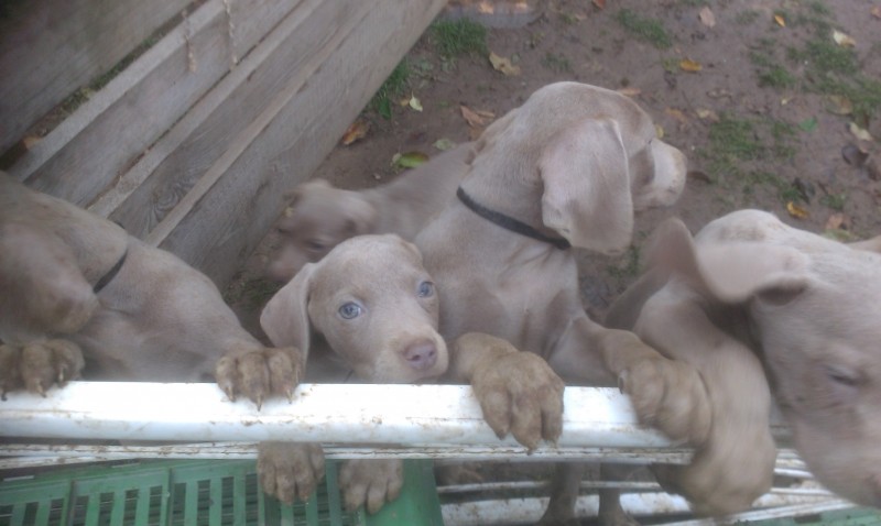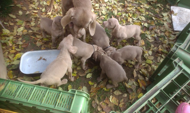Ponúkam na predaj čistokrvné šteniatka Weimarského stavača budú mať 10 týždňov, sú očkované a odčervené, otec šteniatok s papiermi matka bez PP , 5x fenka, 2x psík, cena šteniatka je 160€ fenka, 170€ psík... pri väčšom odbere dohoda možná...Odber možný ihneď...Bližšie info na tel.čísle 0948 266 967 alebo 0944 458 285