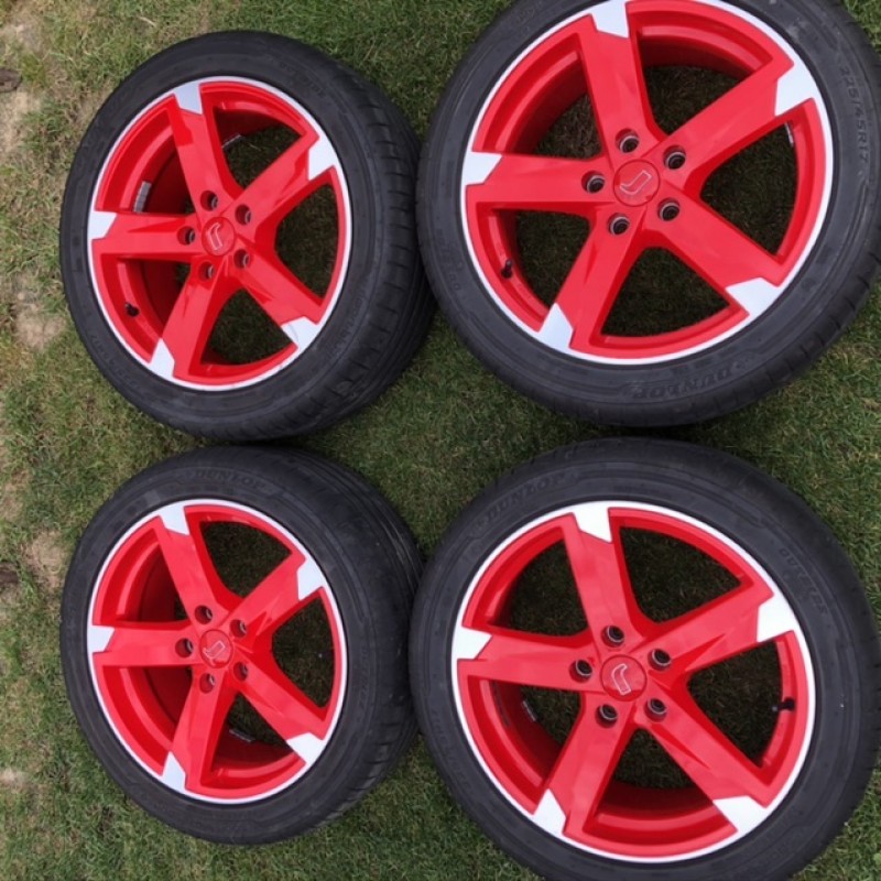 Predám alebo vymením elektróny značky RONDELL 5x112 R17, 7,5Jx7H2, ET-48 sýtej červenej farby spolu s letnými pneumatikami značky DUNLOP s rozmerom 225/45 R17 94W. Pneumatiky obuté v marci 2020. Dezén na predných pneumatikách 8mm a na zadných 8,5mm. Na elektronoch sú drobne známky používania. Elektróny sú vyvážené a nie sú krivé. Možnosť osobnej obhliadky bez problémov.