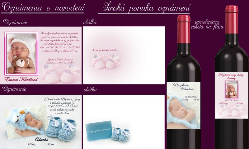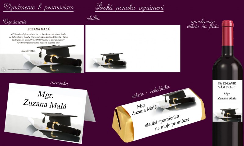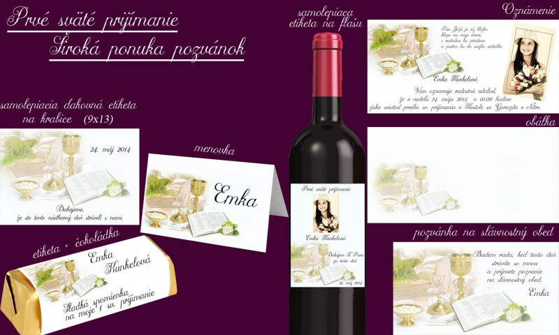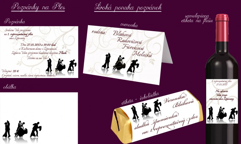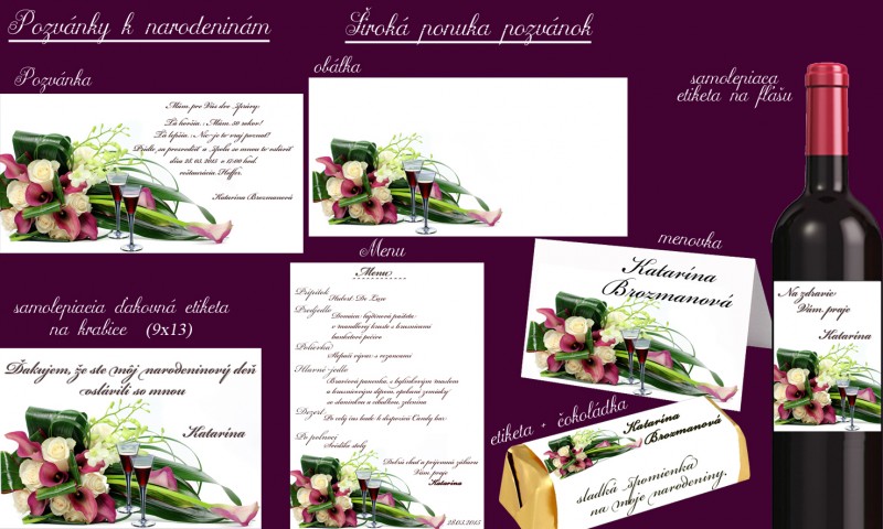 pozvánky, oznámenia, obálky s potlačou, menovky, etikety na fľaše,