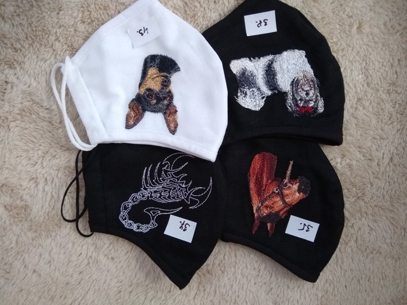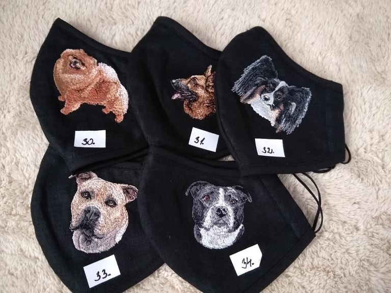 Spríjemnite deň sebe aj svojmu okoliu štýlovými vyšívanými rúškami s obrázkom. Rúška sú dvojvrstvové s antibakteriálnym úpletom s mikrostriebrom. Aktuálne plemená: pomeranian, koker, mops, nemecký ovčiak, pitbull, jack russel, labrador, papillon, ši-ci, biewer, čivava, pinč, bradáč, kavalier. V ponuke aj detské rúška: Nemecký ovčiak na čiernom podklade, Border kólia na sivom podklade a mačiatko na sivom podklade. Cena: 6€