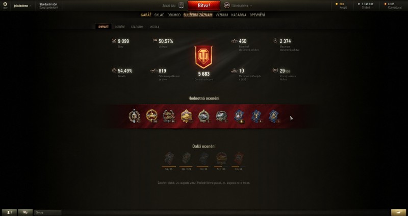 Veľmi dobré tanky na teamové bitky a mnoho ďalších VIII,VII,VI vyskúmaných, na účte sú skoro 4 milióny a 803goldov, čiže si môžte dokúpiť..