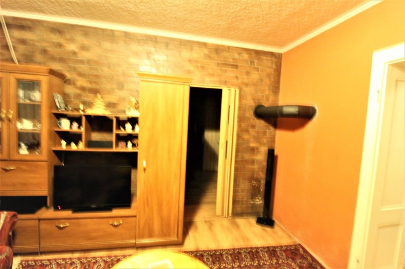Obytnú časť domu tvoria 3 izby, kuchyňa a predsieň. V izbách sú znížené stropy, kúrenie je ústredné plynové a v interiéri sa nachádza krb na tuhé palivo. V izbách je plávajúca podlaha, v kuchyni a v sociálnych miestnostiach je dlažba. Z kuchyne je vstup do komory.
