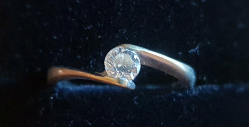 Predam diamantovy prsten osadeny briliantom o velkosti 0.25 caratu. Prsten s krasnm nadcasovym dizajnom je z bieleho zlata o velkosti 50.