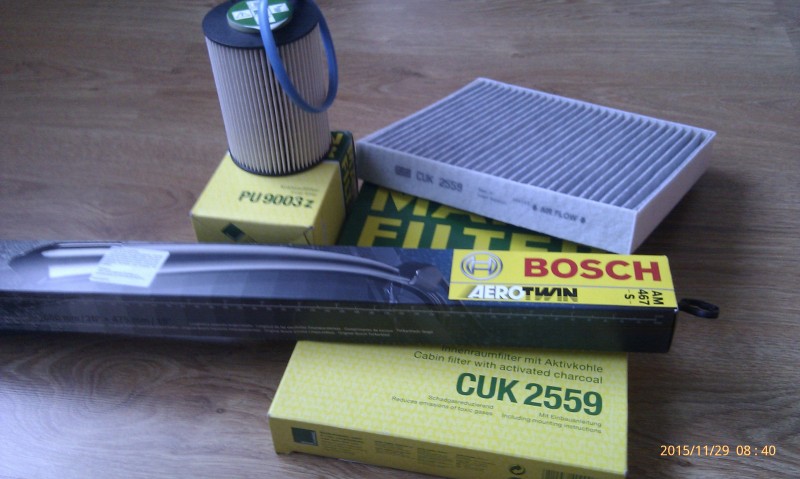 Predám nové stierace Bosch Aerotwin 467 s, kabínový filter s aktívnym uhlím CUK 2559 a palivový filter PU 9003 z. Všetko bolo pripravené pre Ford Mondeo mk4 2,0 TDCi 85kw,r.v. 2010, ktoré som predal. Pošlem aj na dobierku + poštovné. Cena všetko spolu.