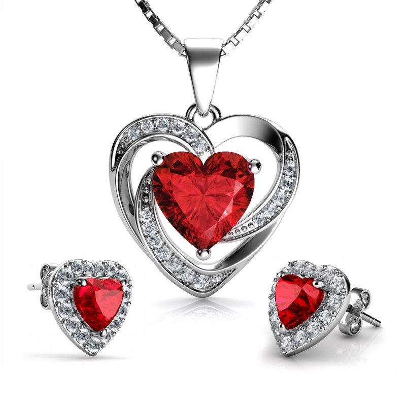 Predám set náhrdelníka a náušníc s červeným srdcom zo striebra. Neobsahuje škodlivé látky, bez obsahu