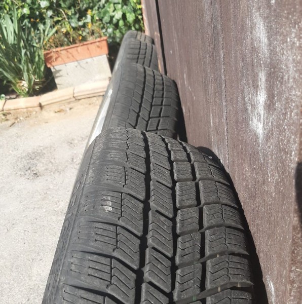 Predám zimné pneumatiky Barum Polaris, výška dezénu 7mm na diskoch, 185-60 R 14, rozteč 4x100. Bolo to na aute VolkswagenGolf 3.