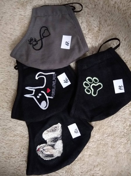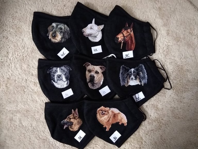 Štýlové vyšívané rúška s motívom psov: beagel, bradáč, pomeranian, ši-cu, york, jazvečík, nemecký ovčiak, labrador, retriever, čivava, bull, staford, buldoček, boston, papillon, kavalier, pudel, bernský salašnícky, pinč, naháč, jack russel, koker. Rúška sú dvojvrstvové. 2. vrstva je antibakteriálny úplet s Ag. V ponuke aj detské rúška s motívom: nemecký ovčiak, britské mačiatko, border kólia.