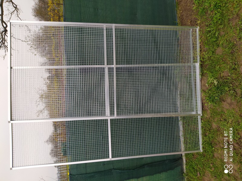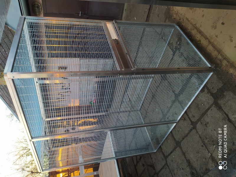 Ponúkam na predaj voliery konštrukcia hliníkový jakel 20×20×1,5mm potiahnutý pletivom esafort alebo zvaranim sitom 104,4×20×3mm z možnosťou oplaštiť lexanom strecha lexan alebo plech T8 každá voliera obsahuje krmny pult 3×miska taktiež predám aj samotné rámy o rozmere 200×100cm na zostavenie voliery