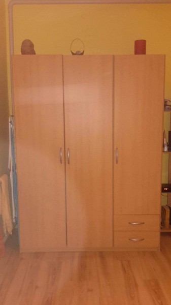 predám 3-dverovú skriňu, rozmery 135x185x57, farba buk, cena 100€