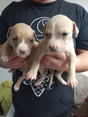 Dobrý deň, predám do dobrých rúk šteniatka Amstaff narodené 6.12.2020, 4 fenky a 4 psy budú k odberu po novom roku alebo po vzájomnej dohode. Rezervujú sa rýchlo, takže dostupnosť vždy aktualizujeme. Cena 230€, ak ste z ďaleka môžeme sa dohodnúť na preprave. Fotky pošlem na email pri vážnom záujme. Šteniatká budú k odberu začipované, odčervené, zaočkované. Fotky rodičov nájdete v inzeráte.