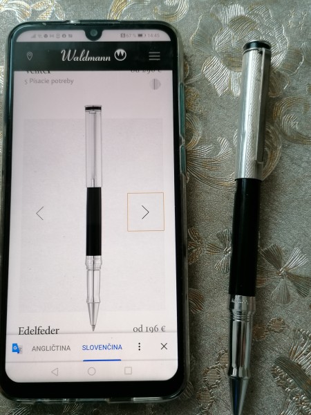 Strieborné pero a tácka.
