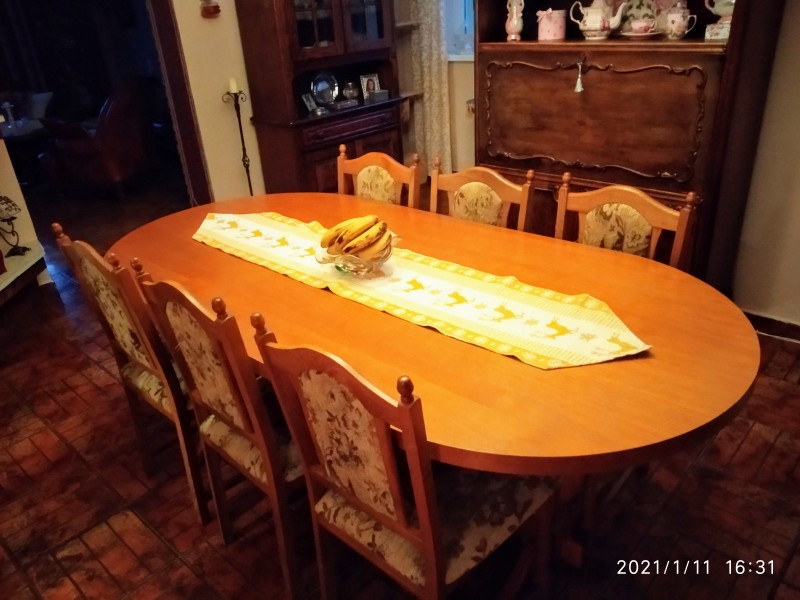 Predám masívny stôl a 6 ks stoličiek vo veľmi dobrom stave za 300 € / resp. cena dohodou /. Rozmer stola je 200 cm dĺžka a 100 cm šírka / vyrobený na zákazku v Prievidzi /.Len osobný odber.