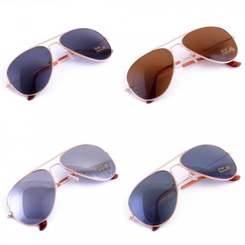 Predám nové slnečné okuliare pilotky aviator - univerzálna veľkosť pre dámy a pánov. Výber skla z viacerých druhov - bledé, hnedé, zrkadlové. UV400 filter ochráni váš zrak pred slnečnými lúčmi. Kovový rám okuliarov je galvanizovaný špeciálnou zlatou vrstvou.