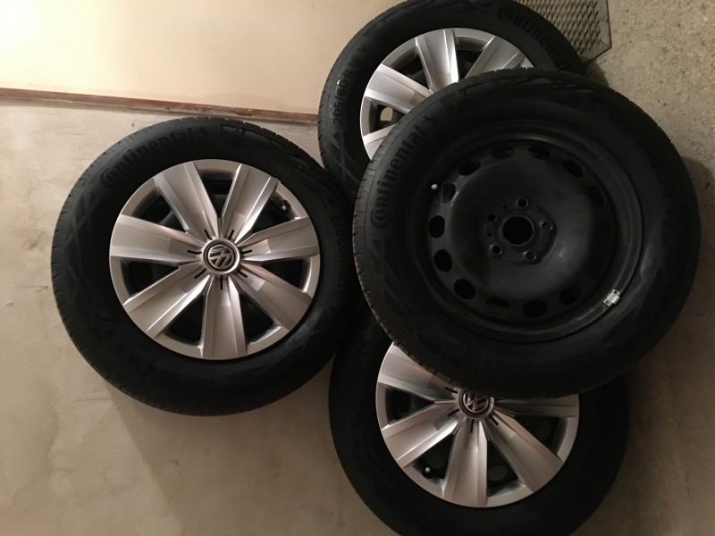 Predám uplne novu sadu 4ks letné PNEU Continental EcoContact 6 205/60 R16 + Oceľové disky 6Jx16 + puklice original volkswagen