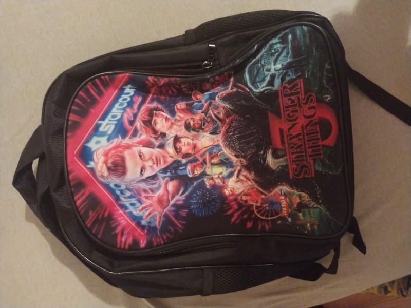 Predávam Stranger things Batoh s obedarom v zachovalom stave. Párkrát bol používaný sestra ho využívala do školy. nejak cca pred 3 mesiacmi ho nosila do skoly a ako je pandémia tak ho sestra nevyužíva a tak sme sa rozhodli že nechceme aby sa dal na to prach este sa niekomu to zíde. Využijete ho najviac na výlety a do školy je pre vás super voľbou. Poprosil by som vopred prevodom na ucet.