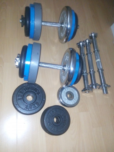 predam jednorucky.Jedna jednorucka 27kg + hriadele 2krat na jednorucku 2krat2,5kg 6krat1.25kg kotuce viac na tel 0944373296