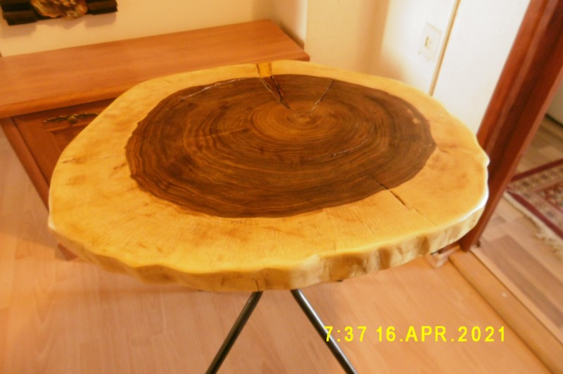 Predam novy stolik z jedinecne krasneho orechoveho dreva o vyske 73cm,dlzke 67 cm,sirke 57 cm,hrubke 4 cm.Drevo je osetrene,nalakovane.