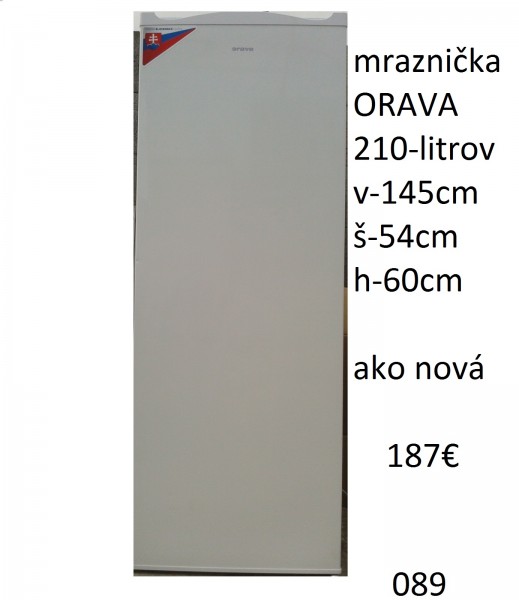 predám veími zachovalú plne funkčnú mrazničku, ORAVA 210 litrov,pekná čistá ako nová, záruka 1. mesiac,vid.foto.po dohode môžem aj doviesť.